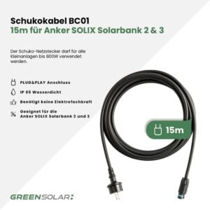 - 1x Anker SOLIX Solarbank 2/3 Schukokabel 15m