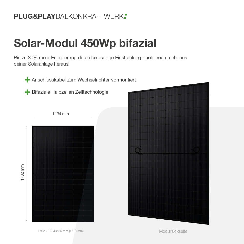 Balkonkraftwerk Basic 900/800 bifazial mit Balkonkraftwerkspeicher 1,60kWh “Anker SOLIX Solarbank 2 E1600 Pro”
