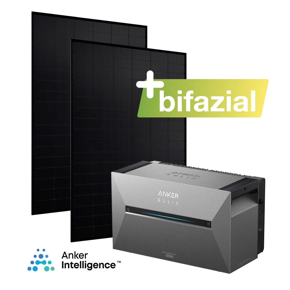 Balkonkraftwerk Basic 900/800 bifazial mit Balkonkraftwerkspeicher 2,7kWh “Anker SOLIX Solarbank 3 E-2700 Pro”
