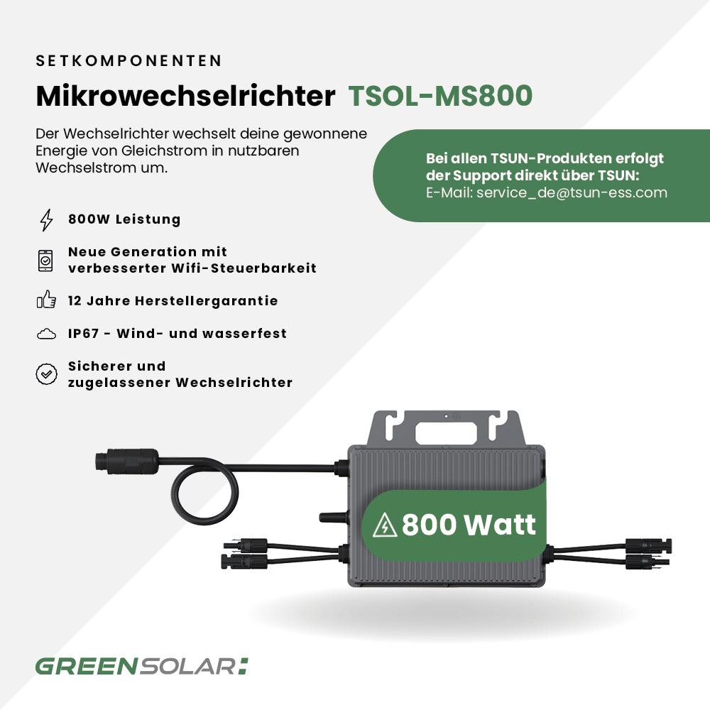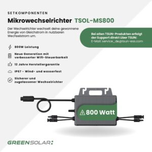 - 1x TSUN Mikrowechselrichter 800W mit Wifi (TSOL-MS800)