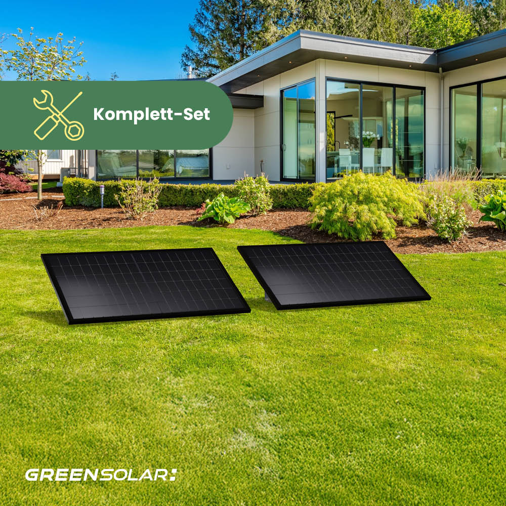 Dein Set besteht aus zwei 450 Wp bifazial Modulen und einem TSUN Mikrowechselrichter 800W mit Wifi (TSOL-MS800) inklusive zwei einzelnen Universalhalterung. Diese können getrennt (max. 1 Meter) voneinander entweder im Garten oder auf deinem Flachdach aufgestellt werden. Die notwendigen Anschlusskabel zum Wechselrichter, sind natürlich vormontiert.