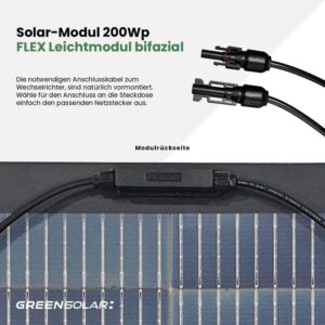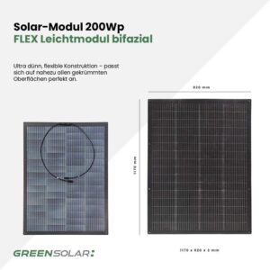 - 2x flexible bifaziale Photovoltaik-Module 200Wp mit je 8 Befestigungsösen – ideal für gebogene oder begrenzte Flächen