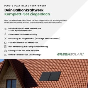 Balkonkraftwerk Ziegeldach M – Komplett-Set (1000W) inkl. Wifi Plug