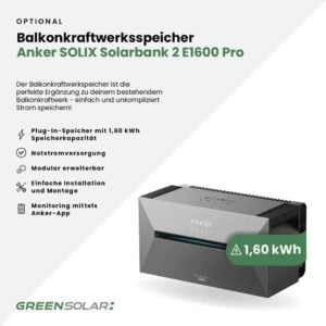 - Kompatibel mit der Anker Solarbank 3 E2700 Master-Einheit und mit der Solarbank 2 E1600 Master-Einheit (max 9,6kWh)