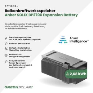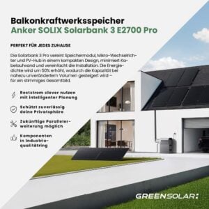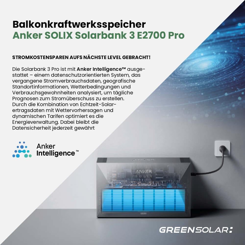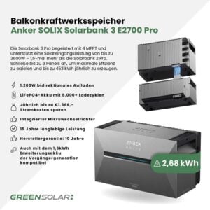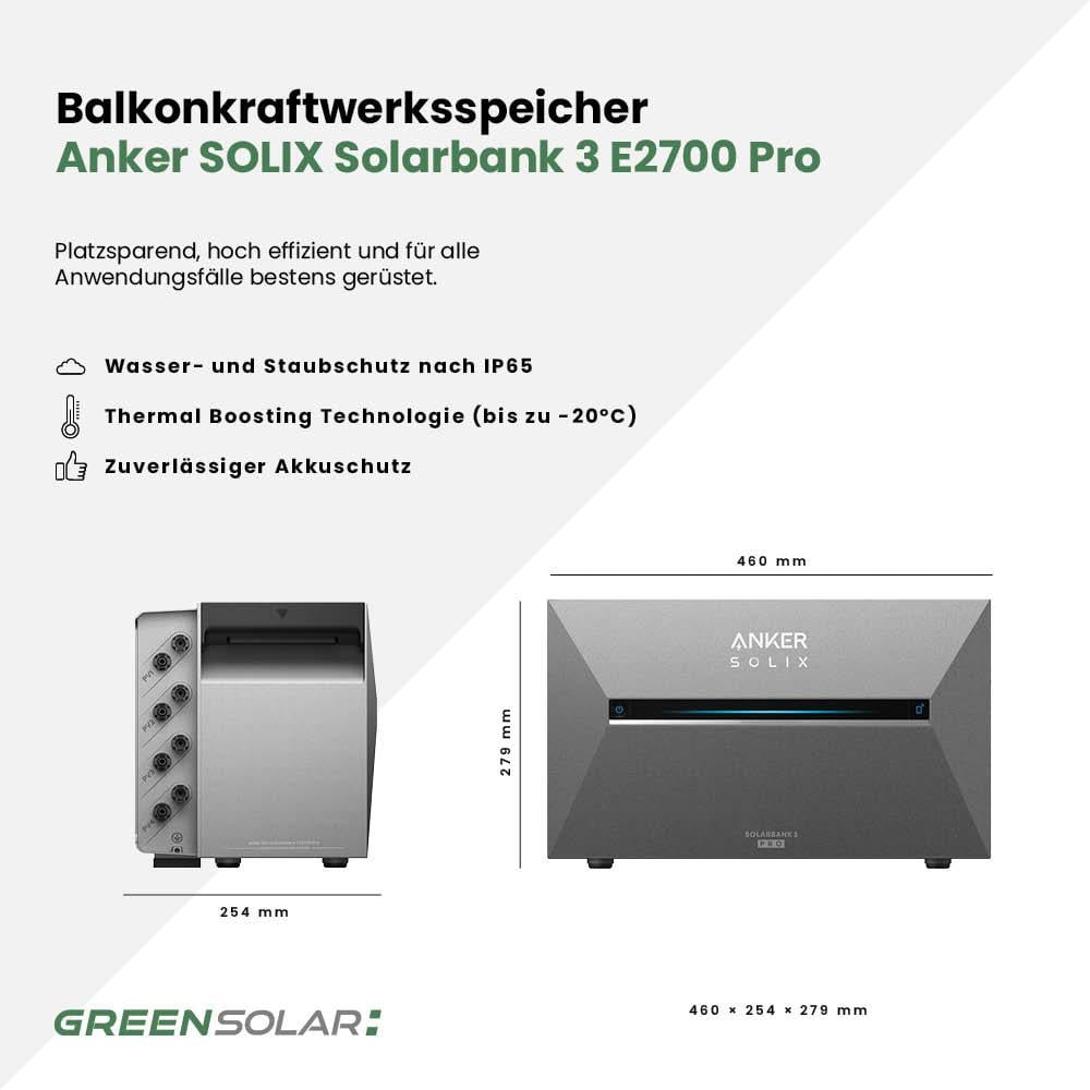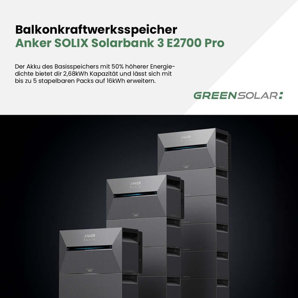 - Anker SOLIX Solarbank 3 E2700 Pro Batteriespeicher mit 2,68 kWh Speicherkapazität