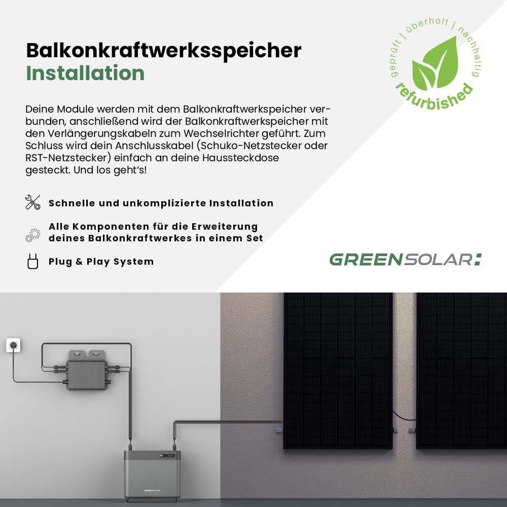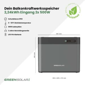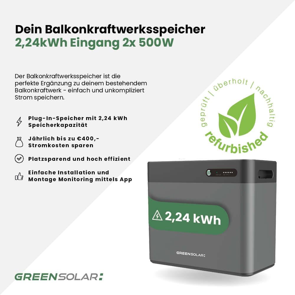 - 1x Balkonkraftwerkspeicher Basis „refurbished“ mit 2,24kWh