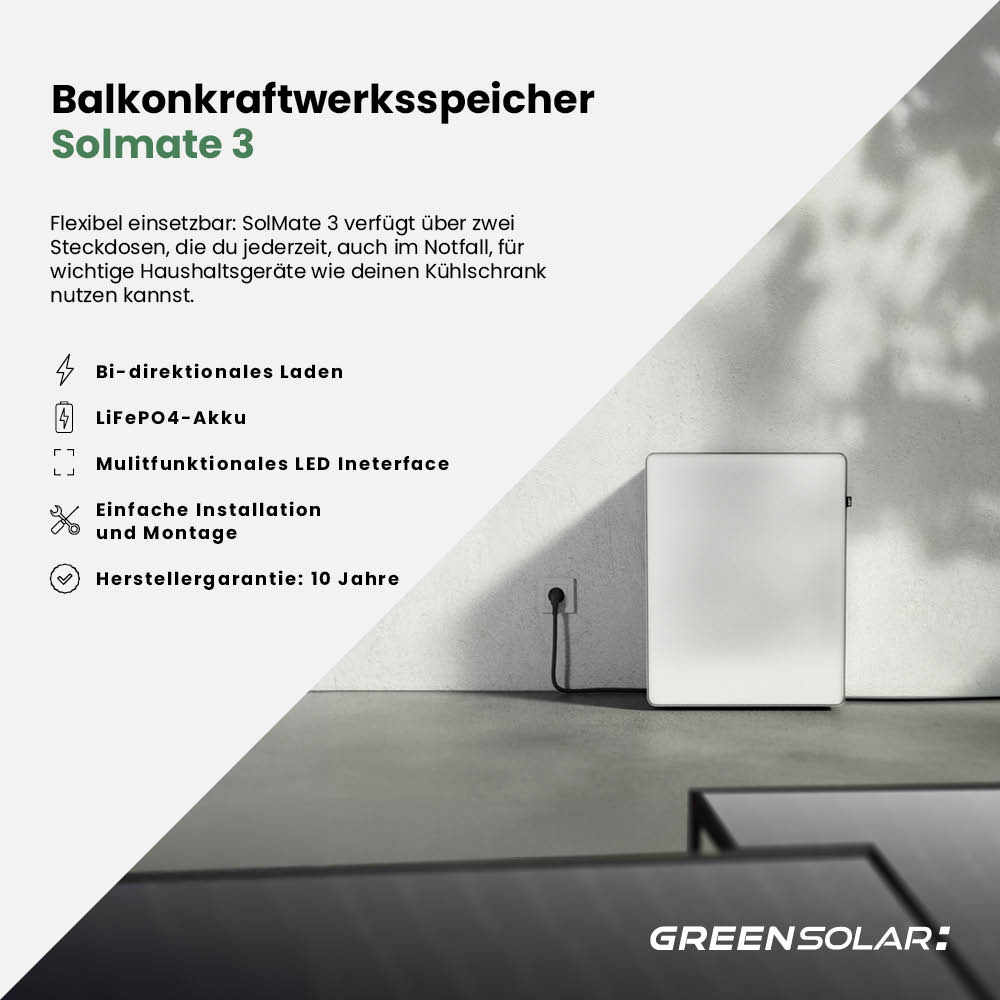 1x Balkonkraftwerk-Speicher SolMate 3 2,56 kWh