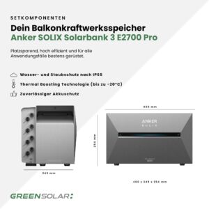 - 1 x Balkonkraftwerkspeicher Anker SOLIX Solarbank 3 E2700