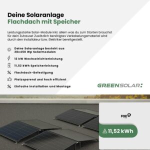 Solaranlage Flachdach 12kWp mit Speicher 11,52 kWh