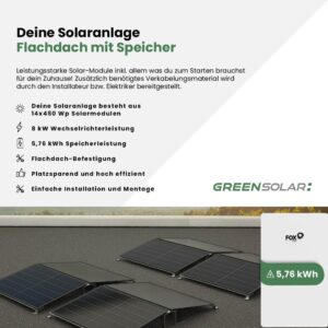 Solaranlage Flachdach 6kWp mit Speicher 5,76 kWh