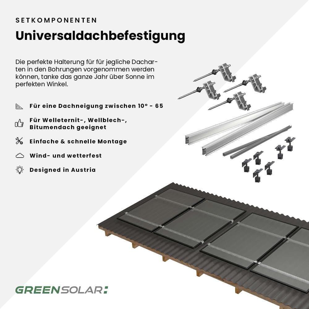- 1x Befestigungsset Universaldach für 10 Module