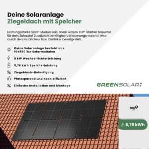 Solaranlage Ziegeldach 4kWp mit Speicher 5,76 kWh
