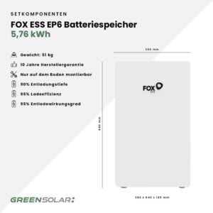 - 1x Fox ESS EP6 Speicher mit 5,76 kWh Kapazität – modular erweiterbar