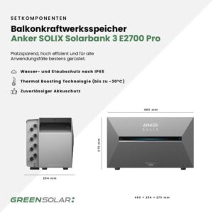 Solarkraftwerk Basic 2320/800 silver bifazial mit Balkonkraftwerkspeicher 2,7kWh „Anker SOLIX Solarbank 3 E-2700 Pro“
