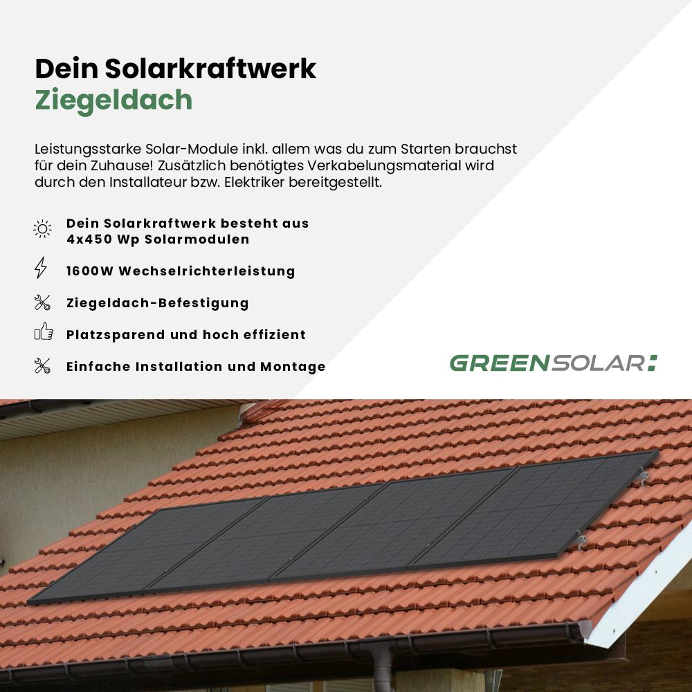 Alles aus einer Hand – Komplettset inklusive 1600 W Mikrowechselrichter und Ziegeldachbefestigung