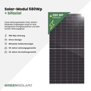 - 31x bifaziale Solar-Module mit je 580Wp Leistung