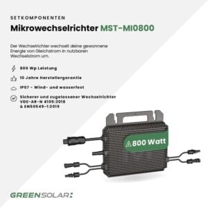 Komplett ausgestattet – 800 W Mikrowechselrichter, Kabel & Netzstecker inklusive