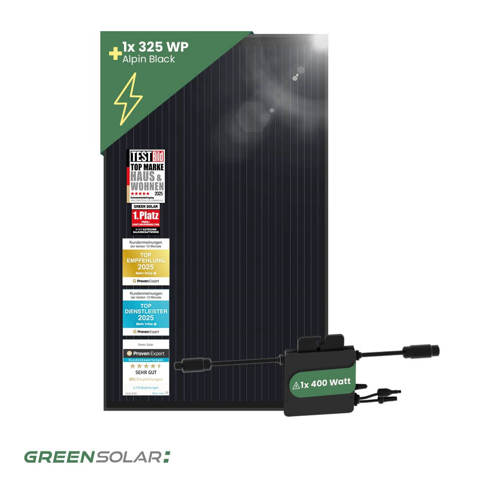 + 1789 Kunden Empfehlungen auf Proven Expert1× 325 Watt Solarmodul mit vormontiertem 400 Watt Wechselrichter