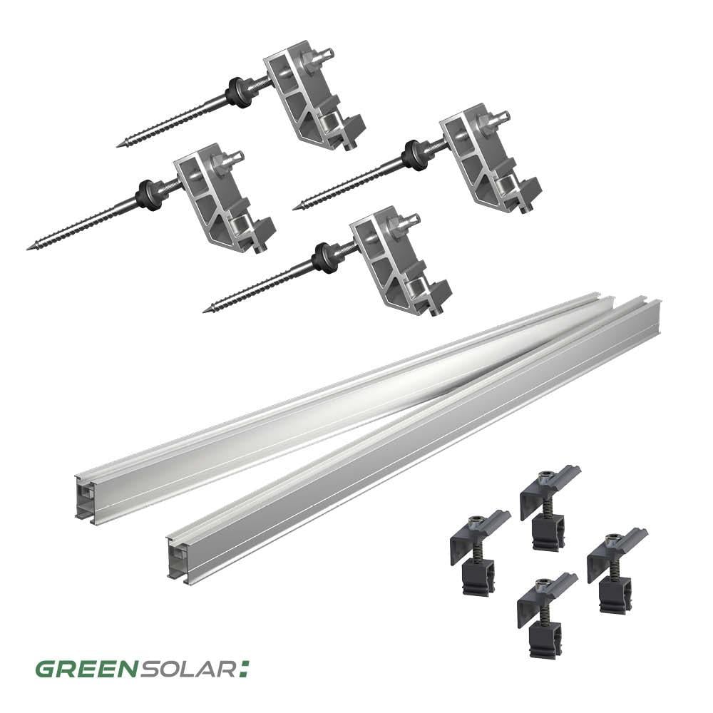 Mit dem Universaldach-Grundset montierst du dein Solarmodul sicher und stabil auf verschiedensten Dachtypen – von Welleternit und Wellblech bis hin zu Bitumen- oder Gartenhausdächern. Die Befestigung erfolgt über Stockschrauben, die direkt in die Dacheindeckung gebohrt werden. Auf den Trageschienen wird das Modul anschließend mit Endklemmen fixiert. Dieses Set eignet sich für die Montage eines Glasmoduls. Möchtest du zwei Module getrennt anbringen, benötigst du zwei Grundsets. Solltest du mehrere Module nebeneinander montieren, lässt sich das System ganz einfach mit passenden Erweiterungssets auf bis zu vier Module in einer Reihe erweitern. Die Halterung ist wetterbeständig, stabil und für die einfache Selbstmontage konzipiert. Detaillierte Anleitungen und Hinweise findest du in der Montageanleitung im Downloadbereich.